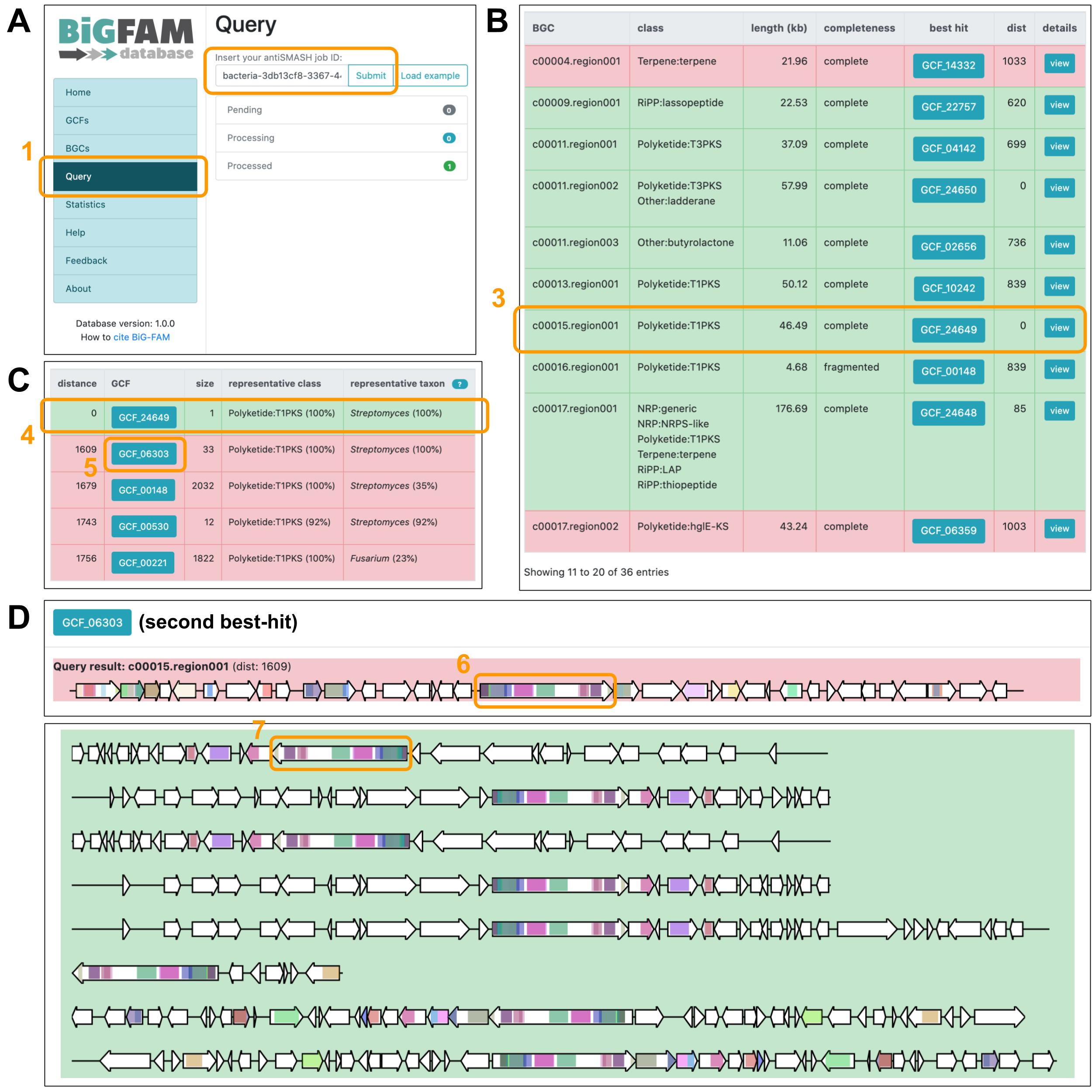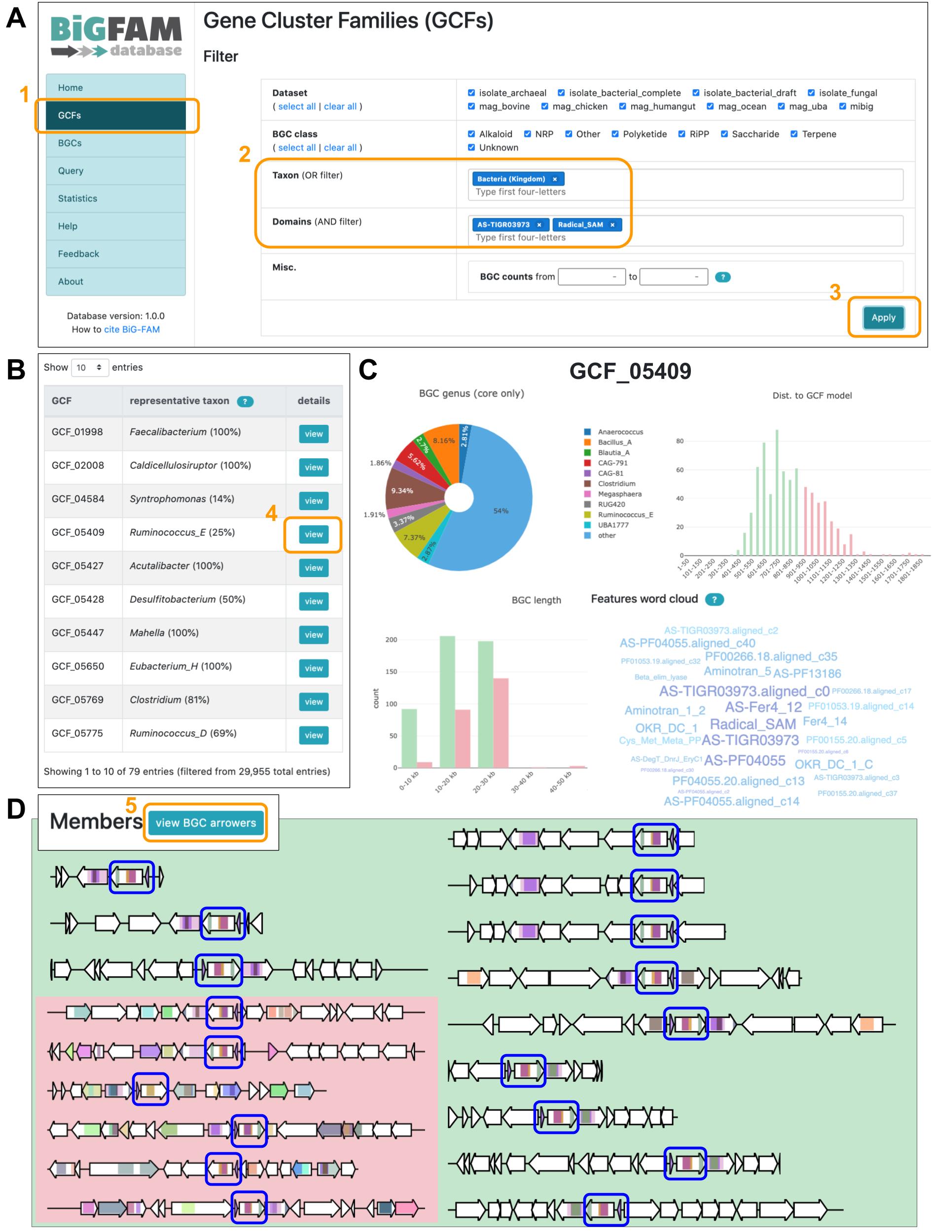 The BiG-FAM database contains GCFs calculated by this tool from over 1.2 million genomes, and allows users to easily search and browse them to analyze patterns of biosynthetic diversity across taxa.